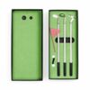 В комплект входят 3 клюшки, 2 мячика для гольфа, флажок и подарочная коробка, крышка которой служит полем для гольфа. Цель игры — забить мяч в лунку, используя специальные клюшки. Игроки по очереди делают удары, стараясь попасть в цель. Чем меньше ударов потребуется, тем больше очков зарабатывает участник.