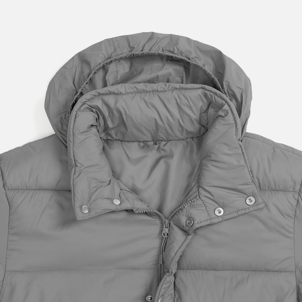- Капюшон без подкладки убирается в воротник и плотно фиксируется на потайные кнопки