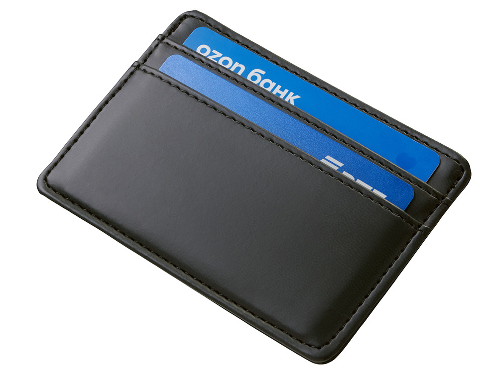 Картхолдер — стильное и практичное решение для деловых людей. В отличие от классических кошельков и портмоне он занимает совсем немного места и с лёгкостью поместится в карман. Данная модель благодаря зажиму на обороте также удобно цепляется за ремень джинс или на ланъярд. Картхолдер вмещает две карты и имеет отделение для купюр. Чтобы ещё больше порадовать клиентов, картхолдер можно вручить не пустым, а вложив в него что-нибудь полезное, например, скидочную карту или свою визитку, чтобы ваши контакты всегда были под рукой. Строгий и лаконичный дизайн Функциональный бизнес-подарок