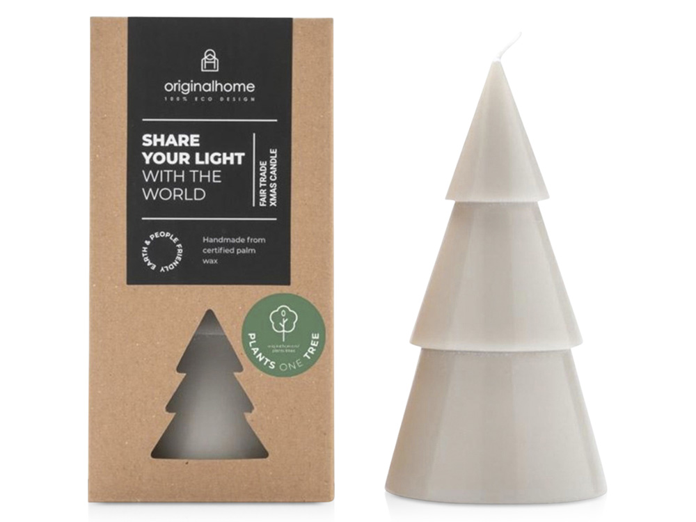 Большая свеча без запаха в виде елки от Originalhome на 100% натуральная и изготовлена вручную из сертифицированного пальмового воска. Это идеальный рождественский подарок для всех, с кем хочется поделиться светом и теплом. Свеча горит примерно 29-32 часа. Воск из пальмовых ядер.