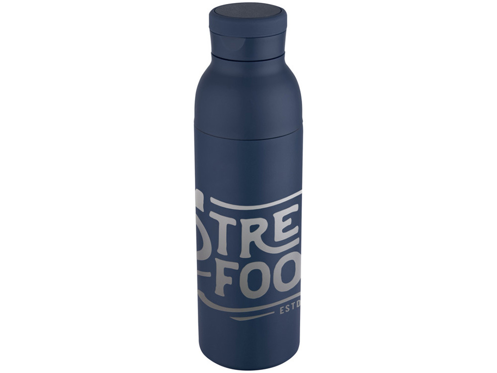 Бутылка для воды с двойными стенками, вакуумной изоляцией, из нержавеющей стали сертифицированной согласно RCS, с незаметной встроенной в крышку силиконовой ручкой. Двухкомпонентная конструкция облегчает простую очистку, а прочное порошковое покрытие и медное покрытие гарантируют долговечность. Поставляется в подарочной коробке из переработанного картона. Объем: 650 мл. 80% Нержавеющая сталь из переработки, сертифицированная RCS, 10% Пластик PP, 10% Силиконовый Пластик. упаковка FSC Mix Credit P5.1 CU-COC-877277.