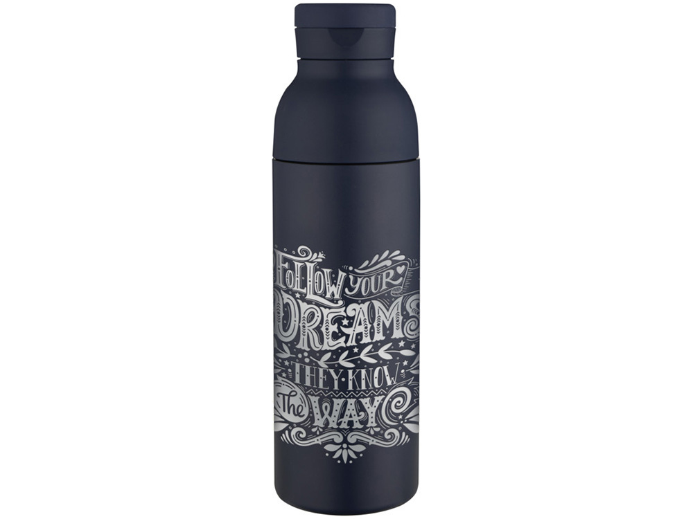 В этот подарочный набор входит бутылка объемом 650 мл с двойными стенками и вакуумной изоляцией, изготовленная из сертифицированной согласно RCS нержавеющей стали с медным покрытием для лучшего поддержания температуры. Бутылка совместима с тремя сменными крышками, входящими в комплект: - Крышка 1 оснащена незаметной встроенной силиконовой ручкой для удобства переноски. - Крышка 2 — это спортивная крышка с откидным носиком для питья и трубочкой. - Крышка 3 имеет удобную крышку из нержавеющей стали, открывающуюся нажатием, что позволяет пользоваться ею одной рукой. Набор упакован в подарочную коробку из переработанного картона, что делает его практичным и продуманным подарком. 90% Нержавеющая сталь из переработки, сертифицированная RCS.
