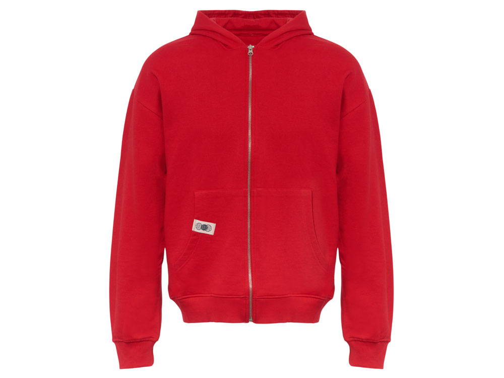 Толстовка оверсайз с капюшоном на молнии «Monaco», красный, лейбл, бренд тайп и термотрансфер в ассортименте цветов, материалов и моделей