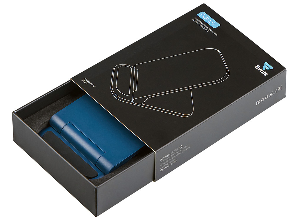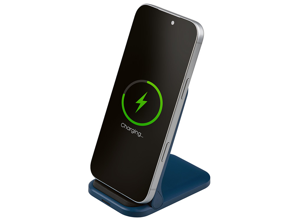 Беспроводное зарядное устройство «Foldy», 15 Вт, темно-синий в ассортименте цветов, материалов и моделей