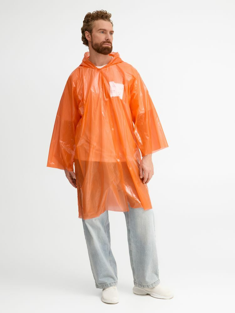 Интересный цвет и печать в один цвет на самом изделии позволят создать не только запоминающийся дизайн, но и отличный маркетинговый инструмент привлечения внимания покупателей.Дождевик-плащ с капюшоном и длинным рукавом из плотного полиэтилена высокого давления (ПВД).
