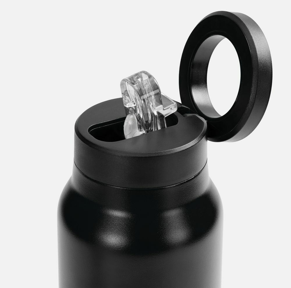 Главная особенность Magnus — магнитное кольцо в крышке, которое превращает бутылку в функциональный гаджет. Оно позволяет закрепить смартфон прямо на бутылку, чтобы смотреть тренировочные видео, повторять упражнения, снимать контент или использовать навигацию. Не нужно искать опору или держать телефон в руках — все уже продумано.