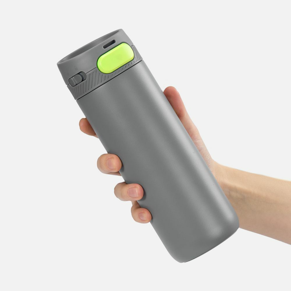 Термостакан X1 с цветной кнопкой, серый с желтым в ассортименте цветов, материалов и моделей