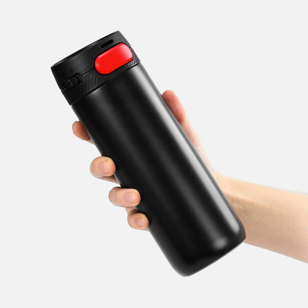 Термостакан X1 с цветной кнопкой, черный с красным в ассортименте цветов, материалов и моделей