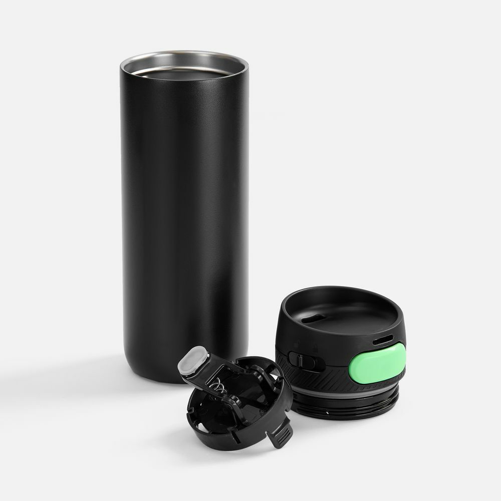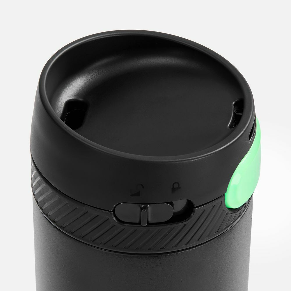 Термостакан X1 с цветной кнопкой, черный с зеленым в ассортименте цветов, материалов и моделей