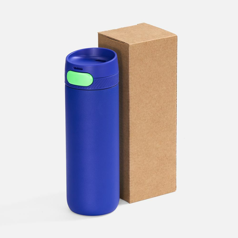 Термостакан X1 с цветной кнопкой, синий с зеленым в ассортименте цветов, материалов и моделей