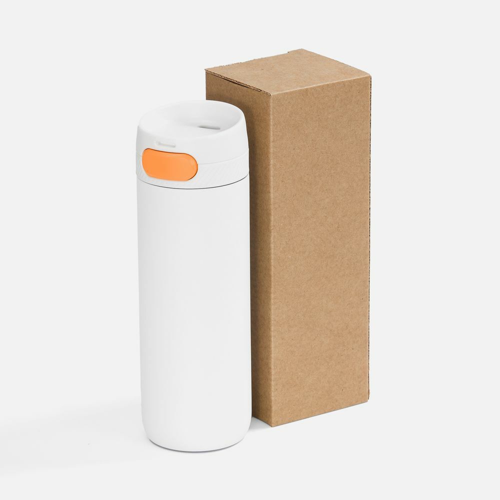 Термостакан X1 с цветной кнопкой, белый с оранжевым в ассортименте цветов, материалов и моделей