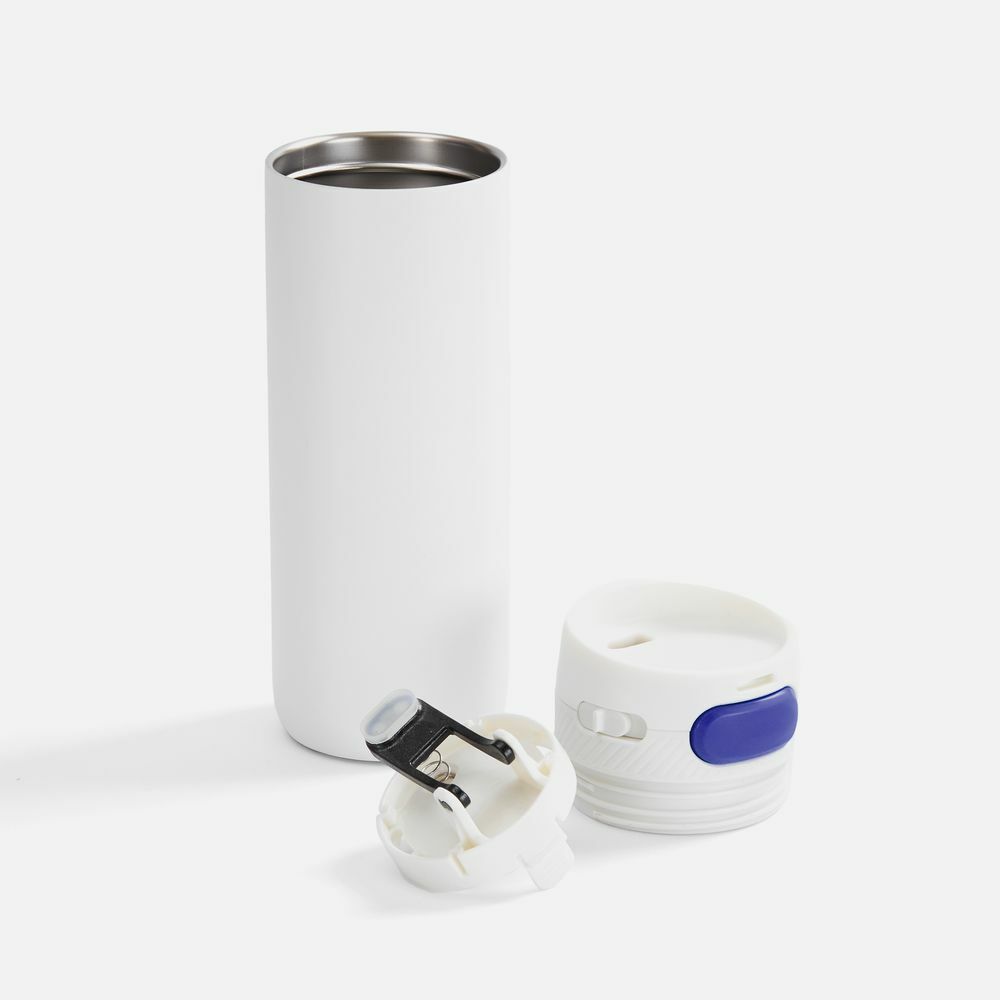 Термостакан X1 с цветной кнопкой, белый с синим в ассортименте цветов, материалов и моделей