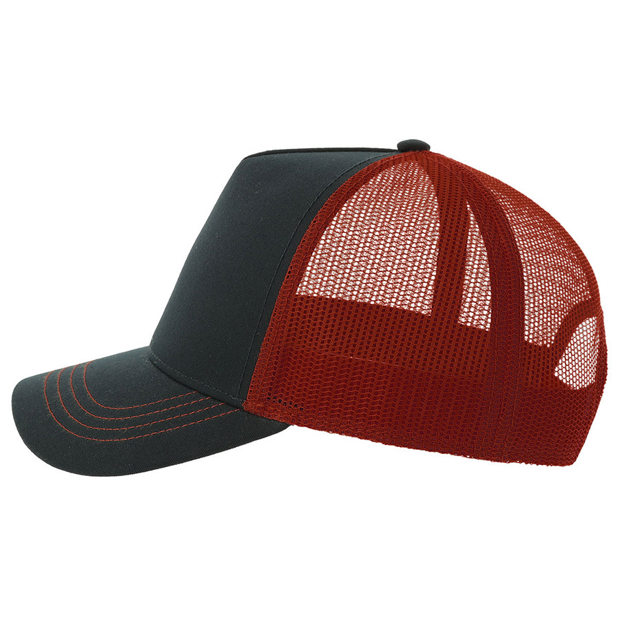 - 5 клиньев, - без лобового шва, - боковые и задние панели со вставкой из мягкой сетки, - изогнутый козырек, - пластиковая застежка. Лобная часть купола и козырек: цвет близкий к Pantone 296 C, сетка: цвет близкий к Pantone 7421 С 58,5 см - средний размер, с помощью застёжки его можно увеличить или уменьшить до необходимого.