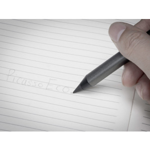 Карандаш изготовлен из переработанного алюминия. В отличие от обычных карандашей его не нужно точить, и он не пачкает руки.