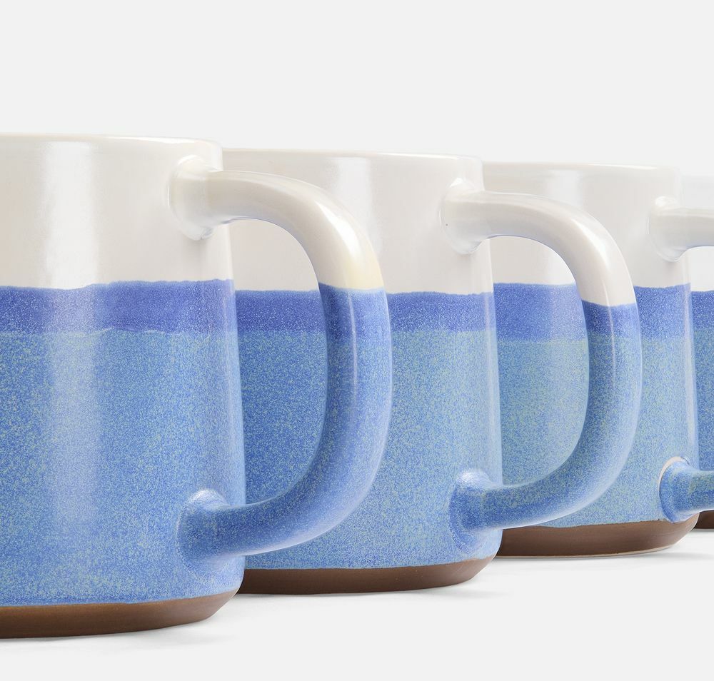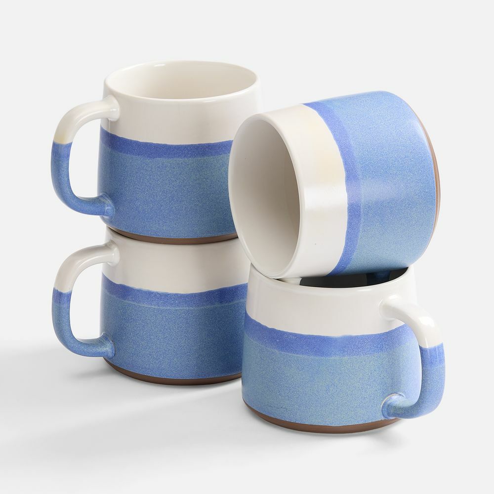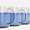 Нижняя половина кружки покрыта реактивной глазурью — особым видом керамического покрытия, компоненты которого вступают в химическую реакцию во время обжига при температуре 1200°C и выше. Из-за непредсказуемого взаимодействия компонентов создаются уникальные переливы, узоры и текстуры, поэтому в партии невозможно найти два абсолютно одинаковых изделия.Емкость 520 мл.