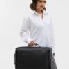 - Два отделения на молнии: первое — для документов с усиленным карманом под ноутбук, второе — объемное отделение для вещей с панелью‑органайзером и внутренним карманом на молнии
