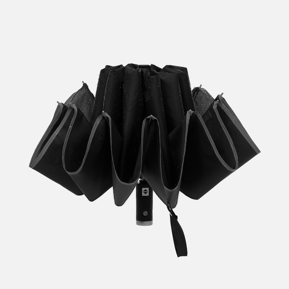 Механизм обратного сложения прячет мокрый купол внутрь, оставляя снаружи только сухую поверхность, — никаких капель на одежде, в машине или общественном транспорте. Прочный ветроустойчивый каркас и плотное водоотталкивающее полотно надежно защитят от самого сильного ливня и порывистого ветра.