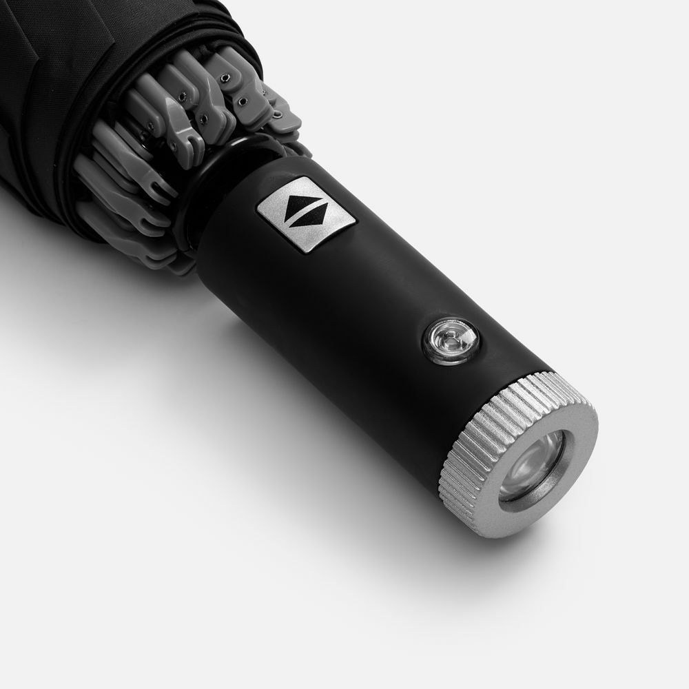Светодиодный фонарик, встроенный в ручку зонта, позволит ориентироваться в темноте и не наступить в лужу. Светоотражающий кант по куполу сделает вас видимыми для водителей, превращая зонт в активный элемент безопасности на ночных улицах.