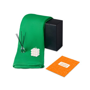 Подарочный набор с пледом, свечой и диффузором, зеленый в ассортименте цветов, материалов и моделей
