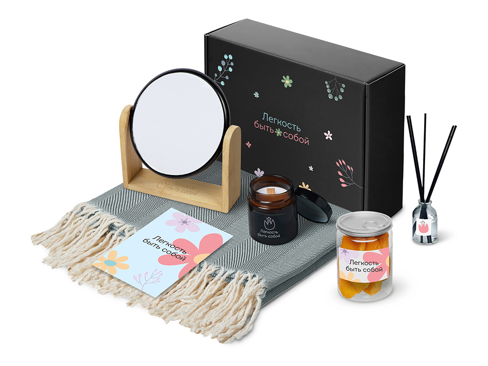 Подарочный набор «Re:f. Shelter» с пледом, зеркалом, свечой и диффузором в ассортименте цветов, материалов и моделей