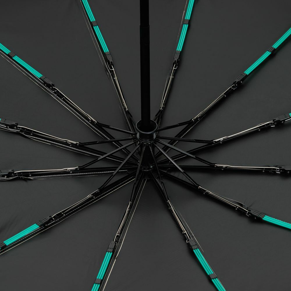 Зонт Ribstar отвечает абсолютной устойчивостью на любую непогоду. 12 усиленных тройных спиц — это не просто каркас, а целая инженерная система, которая противостоит шквальному ветру. УФ-покрытие на внутренней стороне купола позволяет использовать зонт не только во время дождя, но и под палящим солнцем.