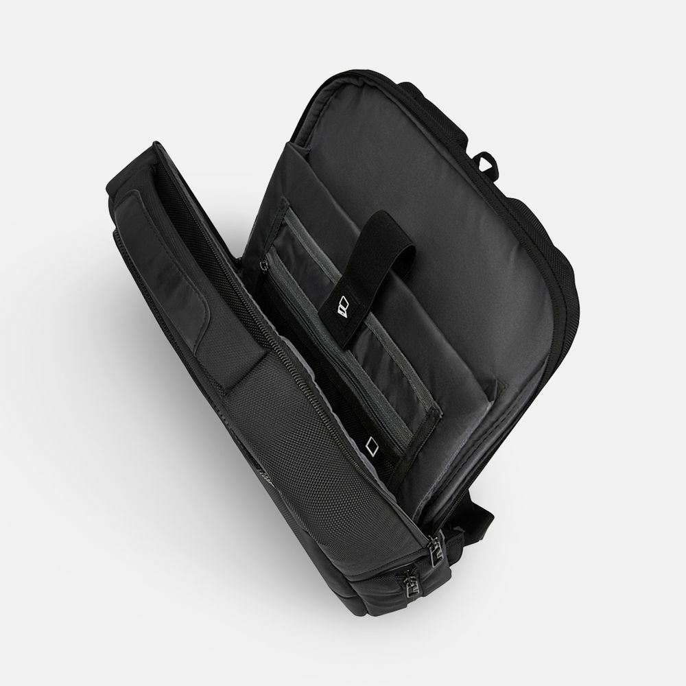 Рюкзак вмещает ноутбук диагональю до 15,6 дюймов, а также планшет, для которого предусмотрен отдельный карман на молнии. Довольно большой объем и продуманная система хранения позволяют переносить все важные документы и канцелярию, помимо основной техники.