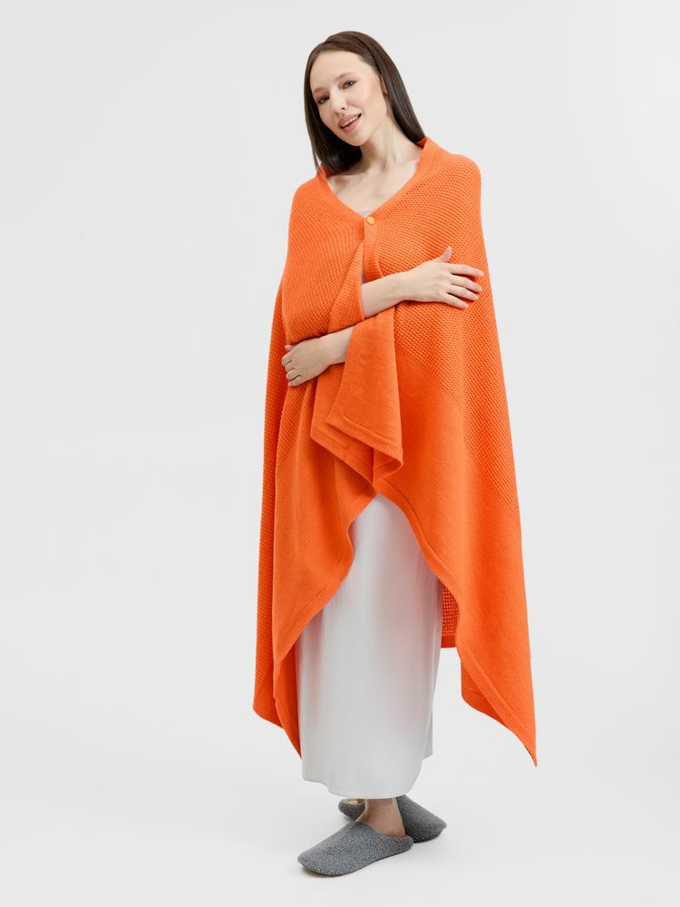 Плед Voyage соткан из мягкого сочетания шерсти и акрила — нежный, теплый и невесомый, он идеален для уютных вечеров. Кнопка позволяет превратить его в элегантную накидку, когда воздух становится прохладнее.