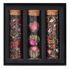 Подарочный набор с тремя видами чая "Floros" — изысканный чайный набор из трёх авторских купажей, собранных в стильные колбы и оформленных в подарочную коробку. В каждой колбе — свой характер, аромат и настроение. Татарский травяной Глубокая основа чёрного чая Ассам и китайского зелёного чая раскрывается нотами шиповника, липы, чабреца, мяты, душицы и шалфея. Лёгкую ягодную сладость придают кусочки сублимированной малины. Тёплый, уютный и многогранный вкус. Цветок дракона Китайский зелёный связанный чай — настоящий чайный ритуал. При заваривании шар раскрывается в изящный цветок, даря мягкий, чистый вкус и эстетическое удовольствие. Таинственный Ольхон Насыщенный Ассам в сочетании с гибискусом, лилией, лимонником и сафлором создаёт яркий и слегка пряный букет. Лепестки василька, розмарин, стевия и кусочки клубники добавляют изысканные сладкие и свежие акценты. Floros — это гармония вкуса, аромата и красоты в трёх стеклянных колбах. Стильная подача, натуральные ингредиенты и эстетика чайных колб делают подарочный набор статусным и при этом универсальным подарком для любого делового повода.