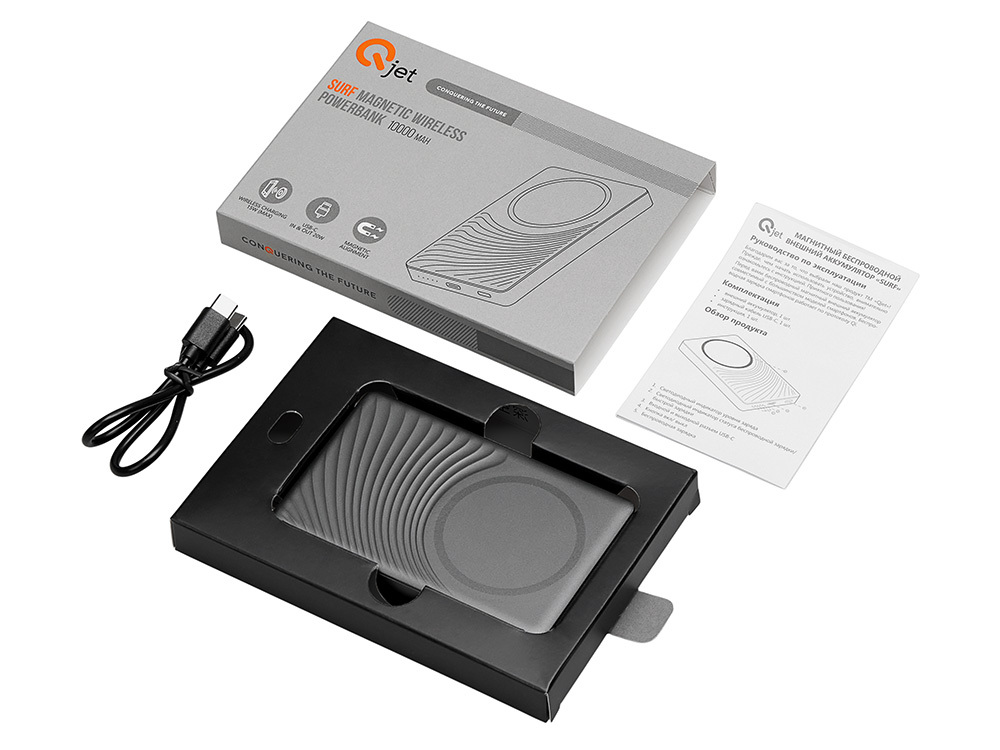 Магнитный внешний аккумулятор «Сёрф» – это идеальное решение для тех, кто ценит сочетание инноваций, надежности и безупречного дизайна. «Сёрф» не только технологичный гаджет, но и стильный аксессуар. Уникальная текстура на передней панели из прочного АБС-пластика и металлический корпус создают ощущение премиальности. Каждая линия подчеркивает современный подход к деталям – ваш логотип станет неотъемлемой частью этого шедевра. Сильные магниты обеспечивают мгновенное и стабильное прикрепление к iPhone и чехлам с магнитным кольцом (MagSafe). - Эксклюзивный «волновой» дизайн - 10 000 мАч ёмкость, хватит на 2–2,5 полных зарядки смартфона - Быстрая беспроводная зарядка 15 Вт - Быстрая зарядка в любую сторону по USB-C 20 Вт - Сильные магниты для надежной фиксации - Упаковка с удобным и быстрым открытием