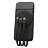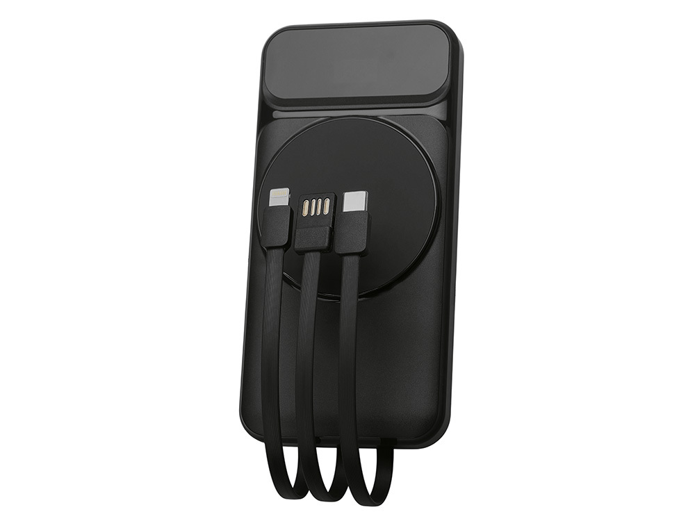 Функциональный и удобный внешний аккумулятор на 10 000 мАч обеспечивает быструю зарядку как по кабелям, так и беспроводным способом, поддерживая современные стандарты скорости. Цифровой дисплей на верхней панели мгновенно показывает точный уровень заряда, а встроенные кабели Lightning, USB-C и входной USB-A устраняют необходимость в дополнительных проводах — всё, что нужно для каждодневного использования, уже есть в самом гаджете. Компактные габариты, сопоставимые с размером смартфона, делают устройство идеальным для путешествий и повседневного использования. Сильные магниты гарантируют надёжное крепление при беспроводной зарядке. В комплекте есть силиконовая накладка: перед использованием удалите защитный стикер и прикрепите её к корпусу. - Встроенные кабели (Lightning, USB-C, USB-A) — не нужно искать дополнительные кабели: зарядка других устройств и подзарядка аккумулятора происходят через встроенные кабели. - Сильные магниты - Цифровой дисплей уровня заряда и статуса зарядки - Функции быстрой проводной и беспроводной зарядки - Упаковка с удобным и быстрым открытием