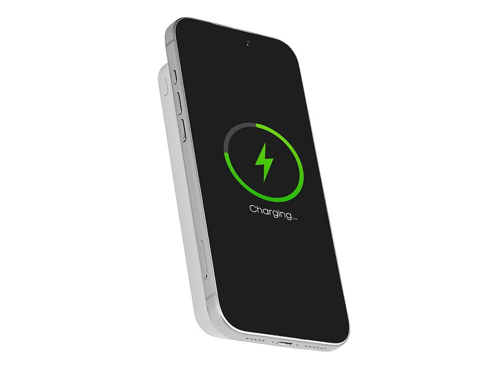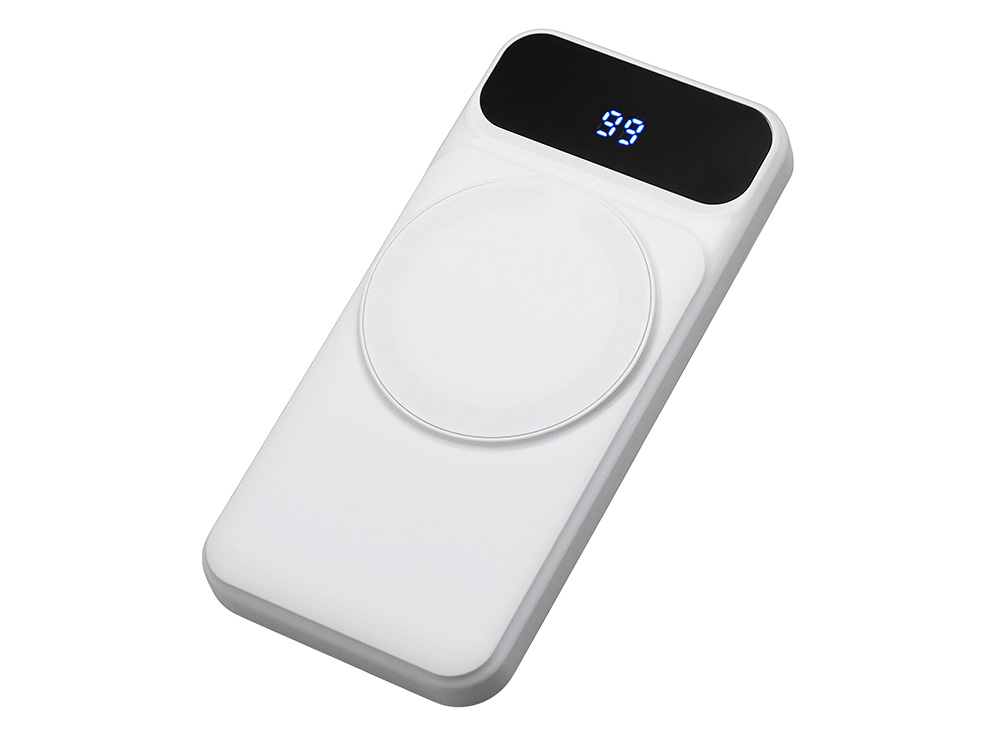 Магнитный беспроводной внешний аккумулятор со встроенными кабелями «Мэни»,быстаря зарядка, 10000 мАч, белый в ассортименте цветов, материалов и моделей