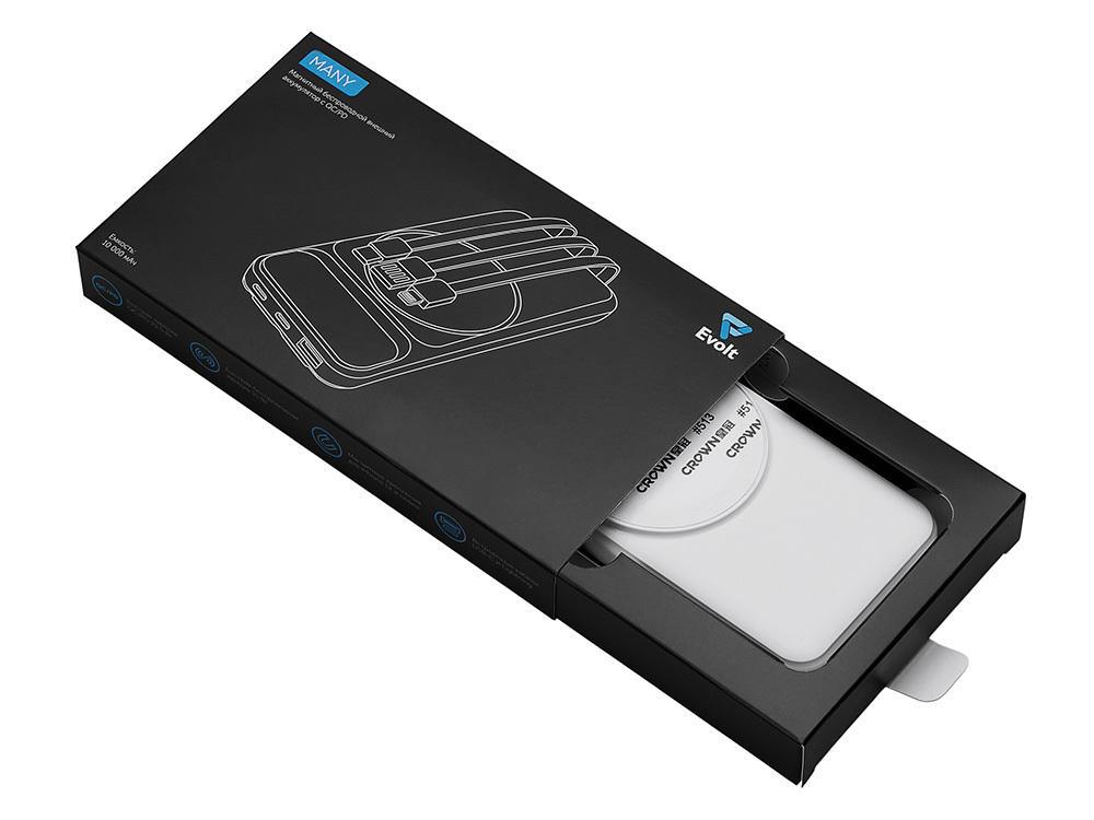 Функциональный и удобный внешний аккумулятор на 10 000 мАч обеспечивает быструю зарядку как по кабелям, так и беспроводным способом, поддерживая современные стандарты скорости. Цифровой дисплей на верхней панели мгновенно показывает точный уровень заряда, а встроенные кабели Lightning, USB-C и входной USB-A устраняют необходимость в дополнительных проводах — всё, что нужно для каждодневного использования, уже есть в самом гаджете. Компактные габариты, сопоставимые с размером смартфона, делают устройство идеальным для путешествий и повседневного использования. Сильные магниты гарантируют надёжное крепление при беспроводной зарядке. В комплекте есть силиконовая накладка: перед использованием удалите защитный стикер и прикрепите её к корпусу. - Встроенные кабели (Lightning, USB-C, USB-A) — не нужно искать дополнительные кабели: зарядка других устройств и подзарядка аккумулятора происходят через встроенные кабели. - Сильные магниты - Цифровой дисплей уровня заряда и статуса зарядки - Функции быстрой проводной и беспроводной зарядки - Упаковка с удобным и быстрым открытием