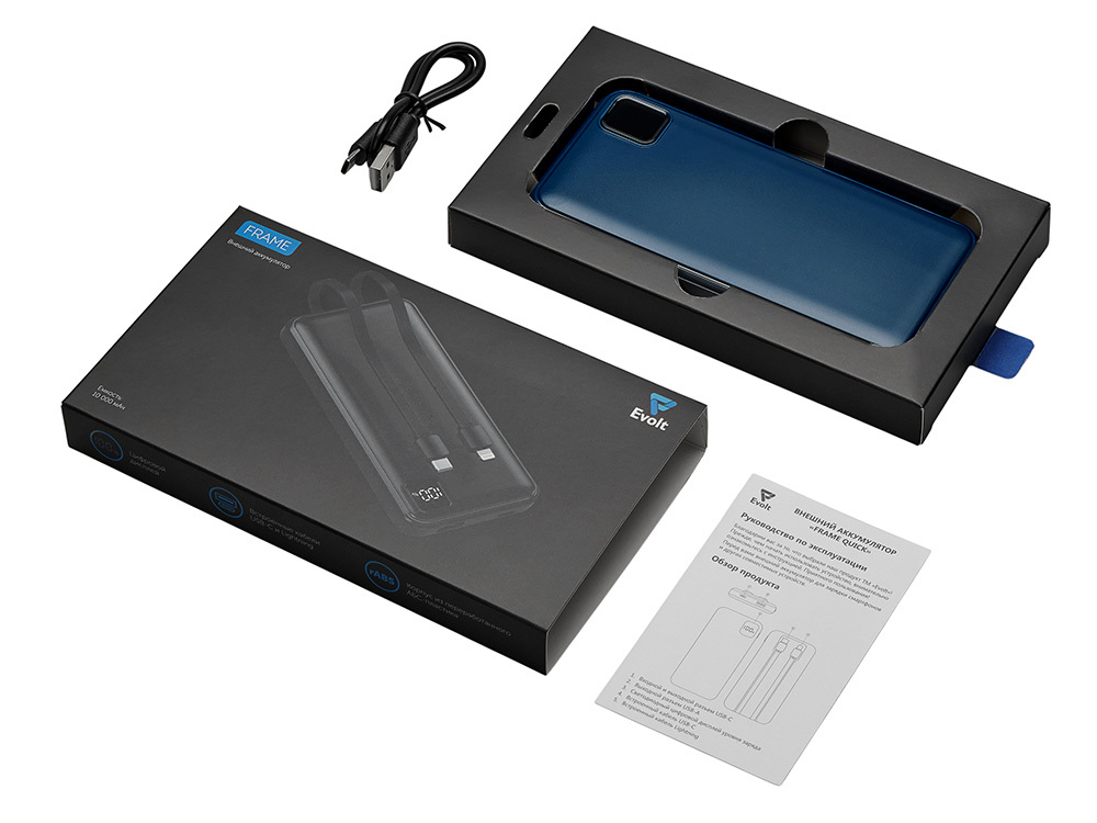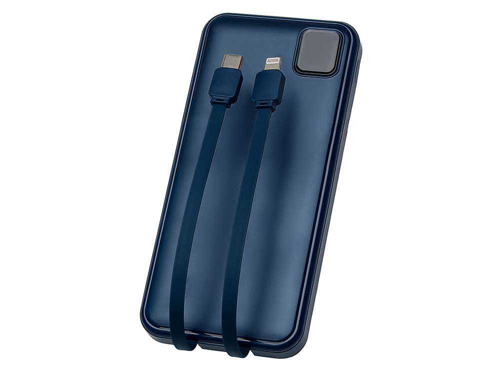 Удобный внешний аккумулятор с встроенными кабелями USB-C и Lightning — ваш надежный партнер в путешествиях, на встречах и в повседневных задачах. Цифровой дисплей в реальном времени показывает точный остаток заряда, а компактные габариты делают его таким же удобным, как смартфон. Прочный корпус из переработанного АБС-пластика и емкость 10000 мАч обеспечивают долгую работу даже при интенсивном использовании. Идеальный выбор для тех, кто ценит комфорт и функциональность в одном устройстве. Продуманная упаковка: для открытия просто потяните за язычок, и появится гаджет с нанесением. - Встроенные кабели USB-C и Lightning — больше не нужно искать провода - Цифровой дисплей с точным отображением заряда - Удобная зона под нанесение логотипа - Компактный размер, сопоставимый с телефоном — легко помещается в карман, сумку или портфель. - Упаковка с удобным и быстрым открытием