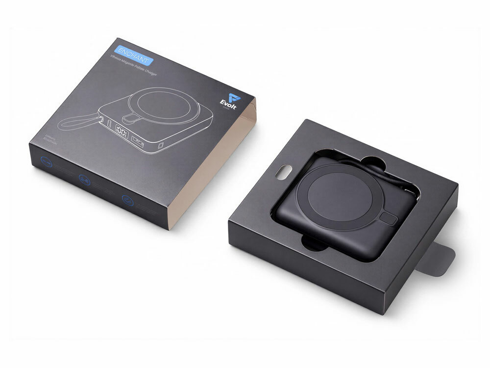 Магнитный пауэрбанк с эффектными возможностями брендирования. Компактный беспроводной аккумулятор с магнитным креплением MagSafe — идеальный корпоративный подарок для клиентов и партнеров. Уникальная особенность: логотип с подсветкой виден даже когда пауэрбанк прикреплен к телефону. Встроенный двусторонний USB-C кабель устраняет необходимость носить дополнительные провода — заряжайте устройства и сам аккумулятор одним кабелем. - Светящаяся гравировка —лого всегда на виду - Мощные магниты: надежно держится на телефоне - быстрая беспроводная зарядка + встроенный двунаправленный USB-C кабель - Универсальность: заряжает все современные смартфоны с USB-C, включая новые iPhone - Компактность: всего 6,6×7,5×2,6 см — помещается в карман, - Удобство: встроенный кабель одновременно служит петелькой для переноски