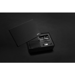 Этот элегантный подарочный набор включает всё необходимое, чтобы рабочий день проходил стильно и комфортно. Термостакан объёмом 350 мл с двойными стенками и вакуумной изоляцией надолго сохранит ваши напитки горячими или холодными. Крышка с защитой от протекания гарантирует, что ваша одежда останется сухой, даже если стакан случайно опрокинется. Премиальный брелок Swiss Peak с глянцевым металлическим покрытием и элегантным ремешком из качественной искусственной кожи — стильный аксессуар, который всегда держит самые важные ключи под рукой. Для заметок и идей в наборе предусмотрены: • Шариковая ручка в деловом стиле с запасом синих чернил, позволяющих провести линию длиной до 1000 метров • Блокнот с мягкой обложкой из переработанного полиэстера и 160 страницами кремового цвета из переработанной бумаги. Все предметы в наборе сертифицированы по стандарту RCS (Recycled Claim Standard). Это гарантирует полностью отслеживаемую цепочку поставок переработанных материалов. В совокупности продукты в этом наборе состоят на 75% из переработанного сырья.
