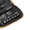 Набор инструментов из 25 аксессуаров. Канцелярский нож, шестигранные ключи, звездчатые и плоские отвертки, отвертка под разные насадки и рулетка 100 см. Набор поставляется в пробковом футляре.