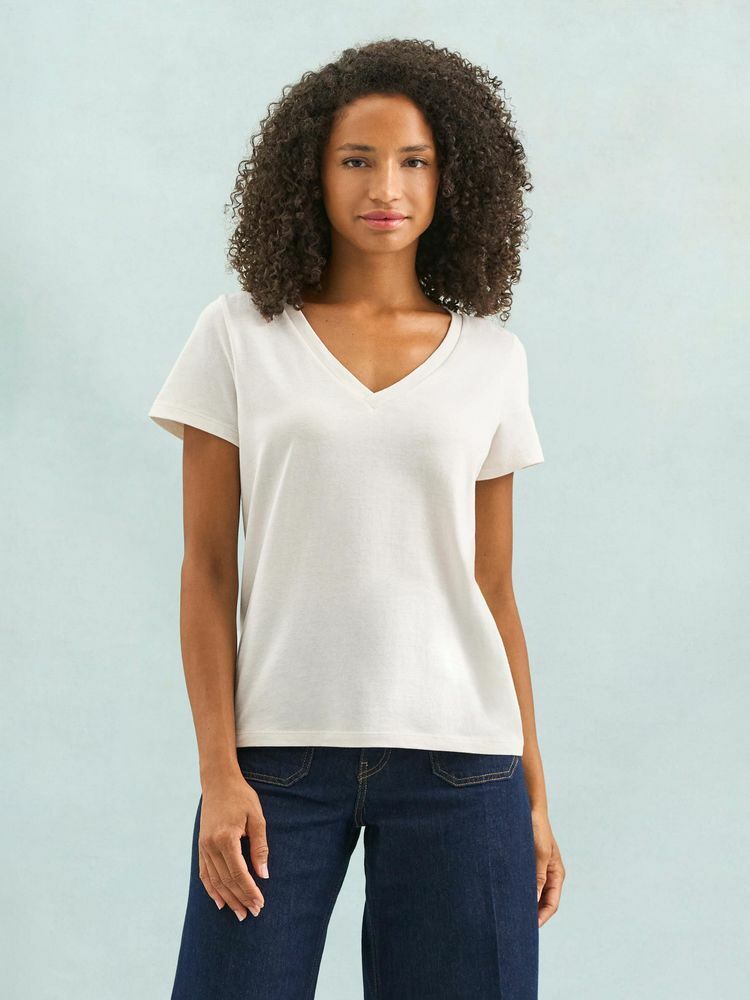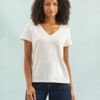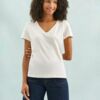 Женская футболка Regent с V-образным вырезом. Такой вырез снова актуален: он визуально удлиняет шею, подчеркивает линию ключиц и добавляет образу легкости.