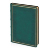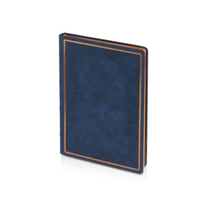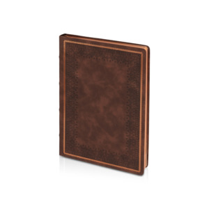 Недатированный ежедневник "Royal" формата А5 с твердой обложкой из искусственной кожи с имитацией нубука украшен художественным бронзовым и блинтовым тиснением. Внутри 256 страниц, выполненных из качественной бежевой бумаги в линейку плотностью 100 г/м². Два шелковых ляссе в цвет обреза блока и обложки облегчают навигацию по записям. Французский корешок дополнительно декорирован изящным бронзовым тиснением в виде виньеток. Скругленные углы обложки и блока подчеркивают стильный дизайн изделия, а блеск бронзового обреза дарит ежедневнику благородный и роскошный внешний вид.