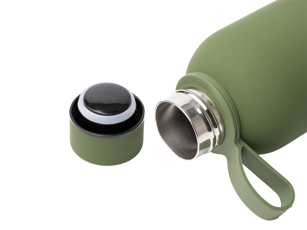 Термобутылка из переработанной нержавеющей стали 304. Мягкая прорезиненная поверхность на корпусе. Удобная силиконовая ручка для переноски. Оснащена противокапельной системой благодаря силиконовому кольцу, встроенному во внутреннюю часть крышки. Крышка и ручка соответствуют цвету корпуса. Объем: 500 мл. - Переработанная нержавеющая сталь 304 - Защита от капель - Нельзя мыть в посудомоечной машине - Поставляется в эко коробке
