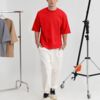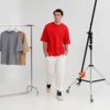Футболка унисекс свободного кроя со спущенным плечом и смещенными плечевыми швами.
