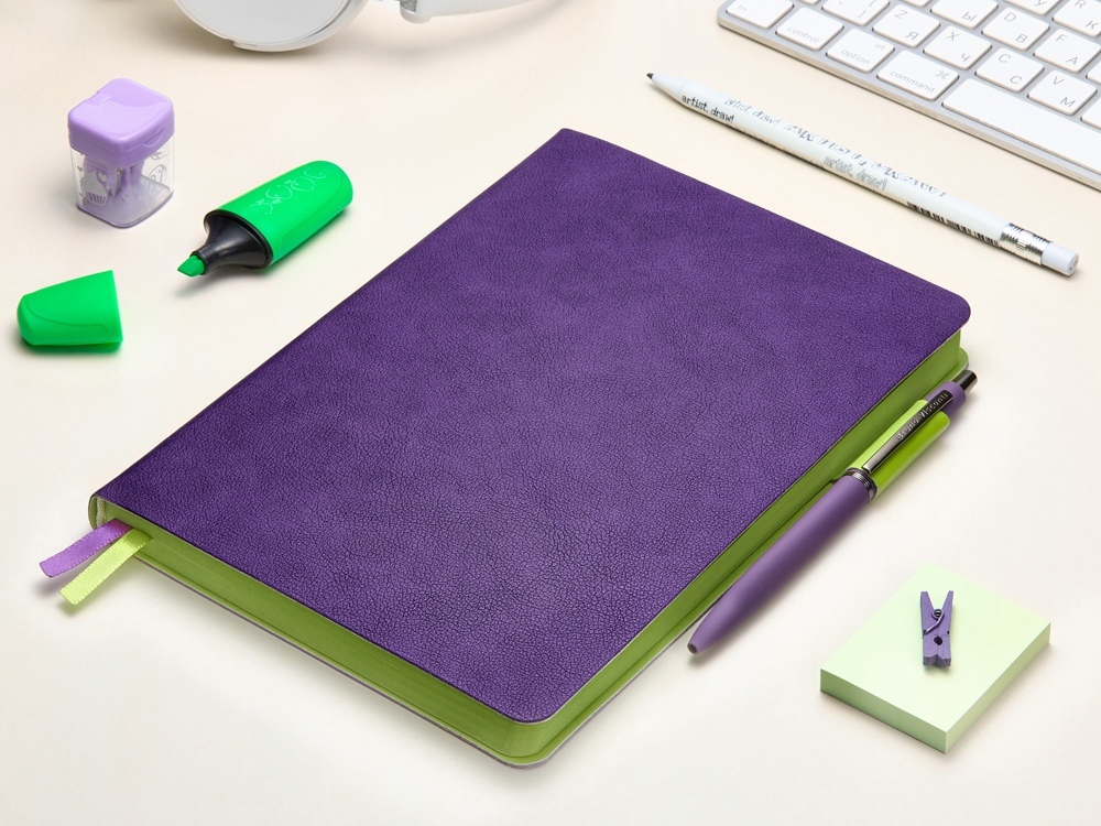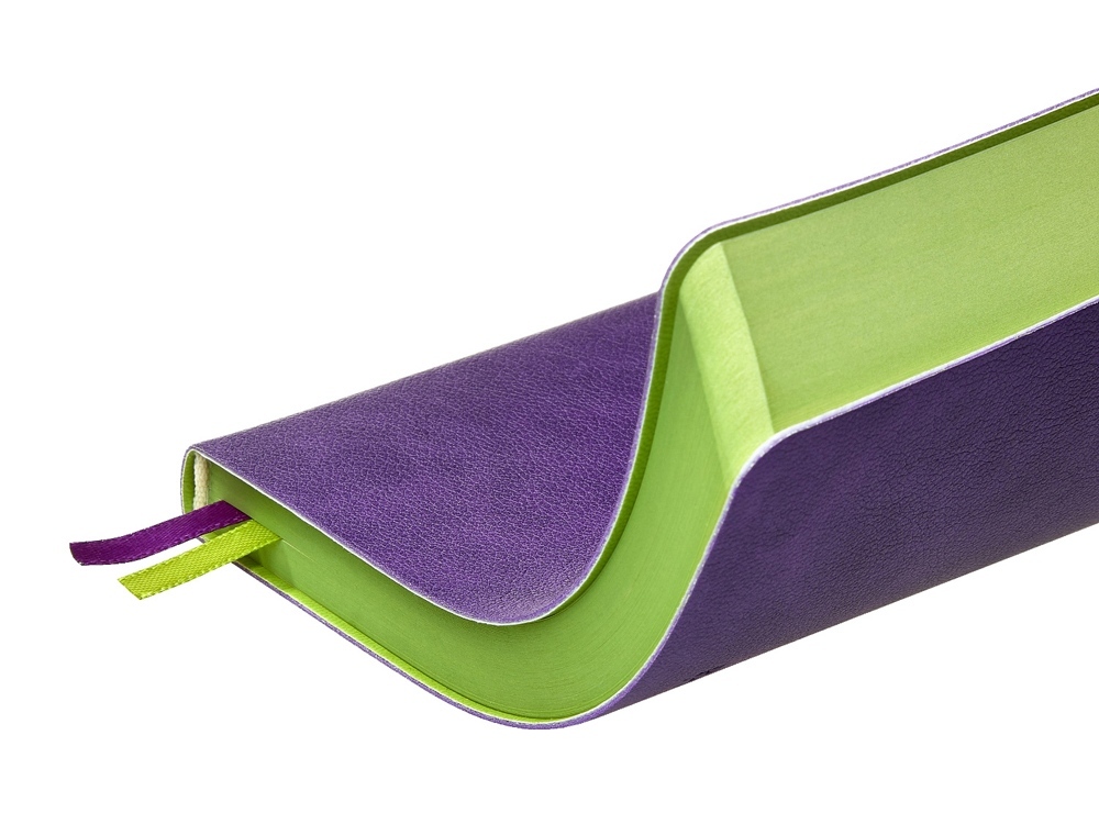 Ежедневник А5 датированный "Boston" 2026, фиолетовый с салатовым обрезом в ассортименте цветов, материалов и моделей