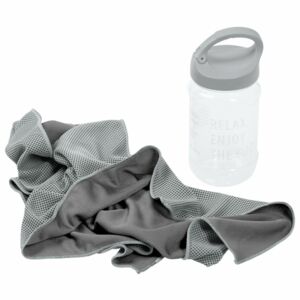 При хранении в бутылке полотенце сохранит охлаждающий эффект в течение нескольких часов. Благодаря крышке-карабину ее удобно прицепить на рюкзак или сумку.