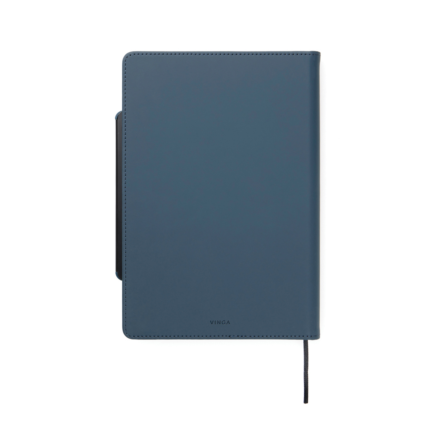 Представляем вашему вниманию ультимативный многофункциональный блокнот VINGA Baltimore. Это умное решение «4 в 1» объединяет в себе практичность, гибкость и продуманный дизайн. Изготовлен из переработанной бумаги, сертифицированной по стандарту RCS, с обложкой в классическом стиле Baltimore с матовым PU-покрытием, что делает его не только функциональным, но и визуально привлекательным. Магнитная линейка служит одновременно и линейкой, и держателем для ручки. Шариковая ручка в цвет набора с синими чернилами входит в комплект. Держатель для ручки легко трансформируется в подставку для телефона. Внутри обложки есть кармашки для карт, а блокнот легко заменить новым блоком, когда закончится старый. Ключевые моменты: • Блокнот содержит 80 листов / 160 страниц в линейку