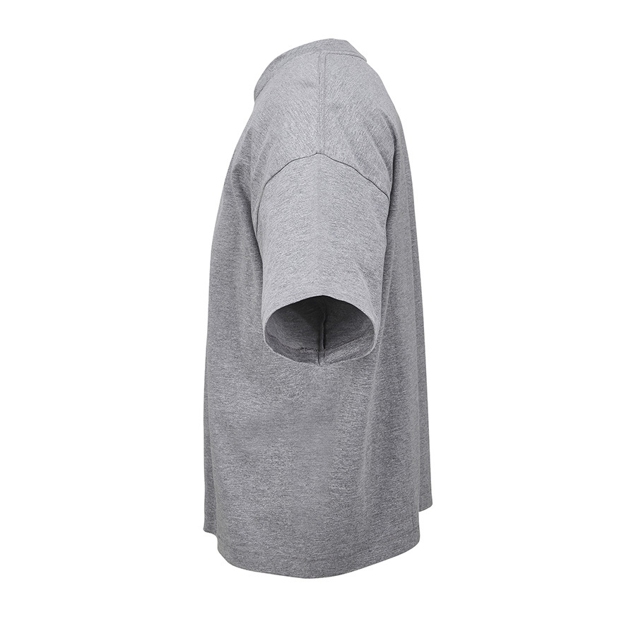 Футболка оверсайз унисекс с круглым вырезом, без боковых швов, высокой плотности. Выполнена из смеси переработанного хлопка (50%) и обычного хлопка (38%) с добавлением вискозы (12%).