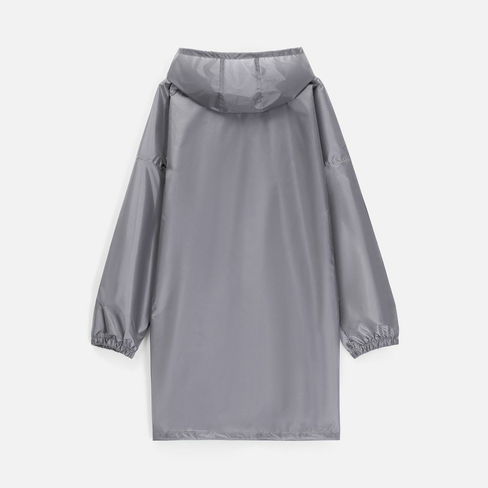 Плащ-дождевик из ткани таффета на молнии с капюшоном. Складывается в мешочек — удобно брать с собой.