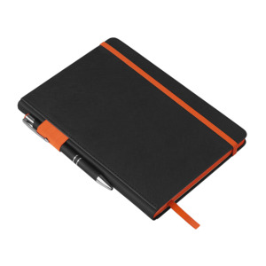 Блокнот «Босси Джуниор» станет вашим стильным ежедневным помощником в работе. Обложка выполнена из текстурной искусственной кожи черного цвета, а яркие детали и срез делают его ярким и заметным бизнес-аксессуаром. Корешок с софт-тач покрытием очень приятен на ощупь. Карман для мелочей и резинки, а также петля для ручки на корешке делают этот блокнот очень удобным, а ляссе позволяет найти нужный раздел максимально быстро. В блокноте 192 страницы кремовой бумаги с FSC-сертификатом. • 192 страницы в блоке с FSC-сертификатом • Карман для мелочей • Наличие резинки, ляссе и петли для ручки на корешке • Текстурная обложка • Наличие контрастных элементов