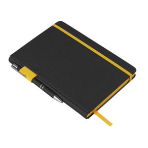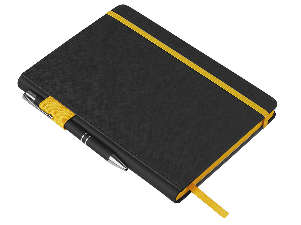 Блокнот «Босси Джуниор» станет вашим стильным ежедневным помощником в работе. Обложка выполнена из текстурной искусственной кожи черного цвета, а яркие детали и срез делают его ярким и заметным бизнес-аксессуаром. Корешок с софт-тач покрытием очень приятен на ощупь. Карман для мелочей и резинки, а также петля для ручки на корешке делают этот блокнот очень удобным, а ляссе позволяет найти нужный раздел максимально быстро. В блокноте 192 страницы кремовой бумаги с FSC-сертификатом. • 192 страницы в блоке с FSC-сертификатом • Карман для мелочей • Наличие резинки, ляссе и петли для ручки на корешке • Текстурная обложка • Наличие контрастных элементов