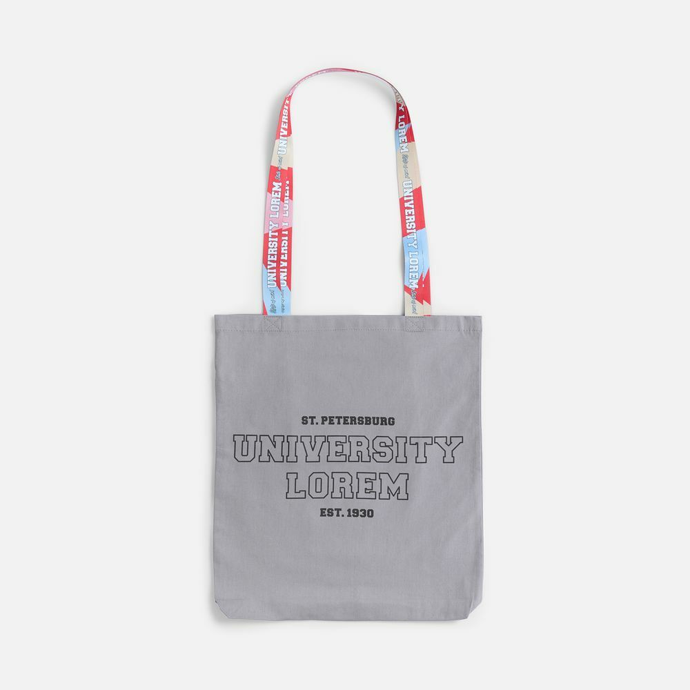 Сумка состоит из прочной базовой основы в трех цветах: классический черный, универсальный серый или глубокий синий — и двух текстильных строп с возможностью полной запечатки. Длину стропы для ручки можно выбирать от 60 см (для ношения на руке) до 90 см. Увеличенная длина ручек позволяет более удобно размещать сумку на плече — или можно оставить хвостик свободным и получить милую деталь и дополнительную полезную площадь для размещения рекламного сообщения или логотипа.