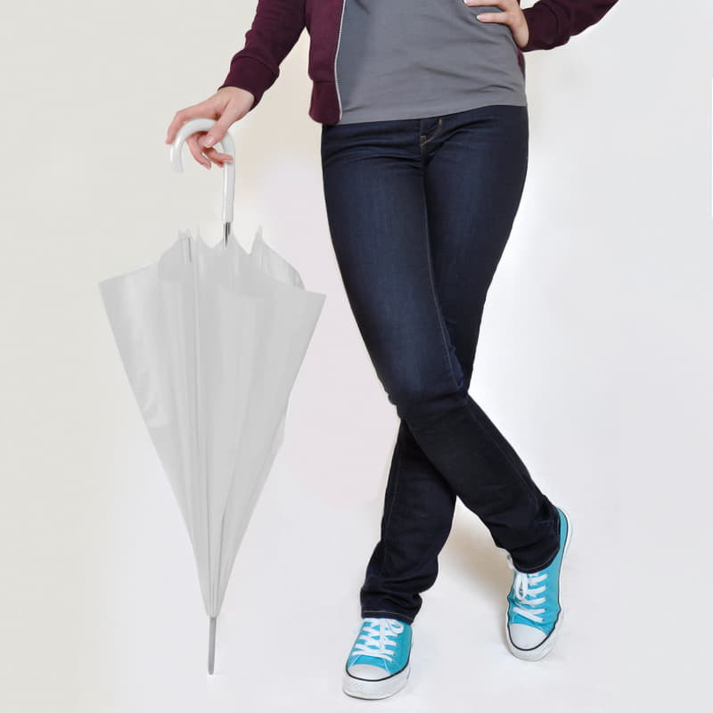 Зонт-трость, механический. Диаметр купола: 103 см, длина стержня: 84 см. Состав купола: 100% полиэстер 190T. Состав спицы и стержень: металл. Пластиковая ручка в цвет купола. Цвет купола близкий к пантону White C.