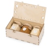 Набор состоит из трёх баночек крем-мёда: с ванилью, кокосом и миндалём, кофе. Набор упакован в подарочную деревянную коробку.